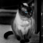 Pye is a regular visitor in Care’s room, and occasionally stops in mine. Some nights, usually around the time of year that he was killed, we hear his voice, yowling as only a Siamese can. We have a picture of him looking out of the altar mirror; very obviously Pye, and it’s also very obvious that there is no cat in front of the mirror. Besides – of our seven currently breathing cats – not a one is Siamese.