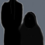 For one thing, the tiny nightlight in the room should have cast a meager bit of light on their faces, but there was nothing, absolutely no faces – just an uncompromising blackness. I could sense more than see that they were wearing suits with overcoats. The tall one wore a hat, the peak of which was just barely under the top of the doorway. The shorter one was much shorter, the top of his bare head close to mid-body of the tall one. There was hardly even definition between where his head and shoulders were, other than a slight size difference, as though he had no neck.