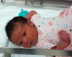 That really IS a beautiful baby–and I normally don’t think that’s possible before six months, as they tend to look like little aliens before then. Gorgeous.