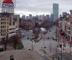 City on lockdown; an empty Kenmore Square in #Boston, Mass. (via @NBCNews / Andrew Golden)